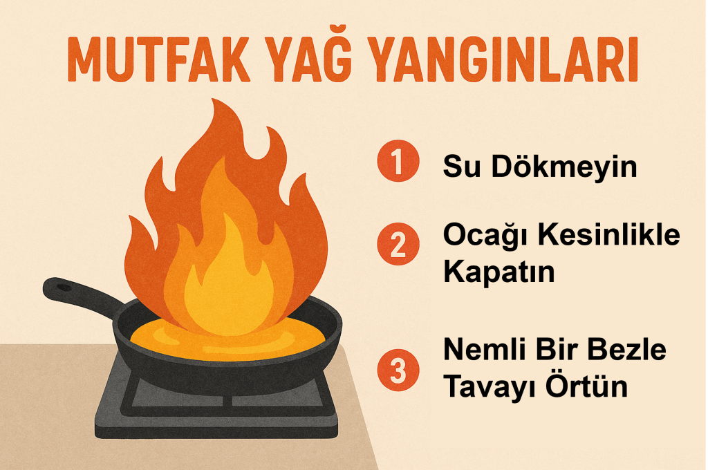 Ev kazalarının önemli bir bölümünü mutfakta çıkan yangınlar oluşturur. Özellikle kızartma yağı kaynaklı yangınlar, hızla büyüyebilir ve ciddi can-malzeme kayıplarına neden olabilir. İşte bu tür yangınlara karşı alınabilecek önlemler ve doğru müdahale yöntemleri: