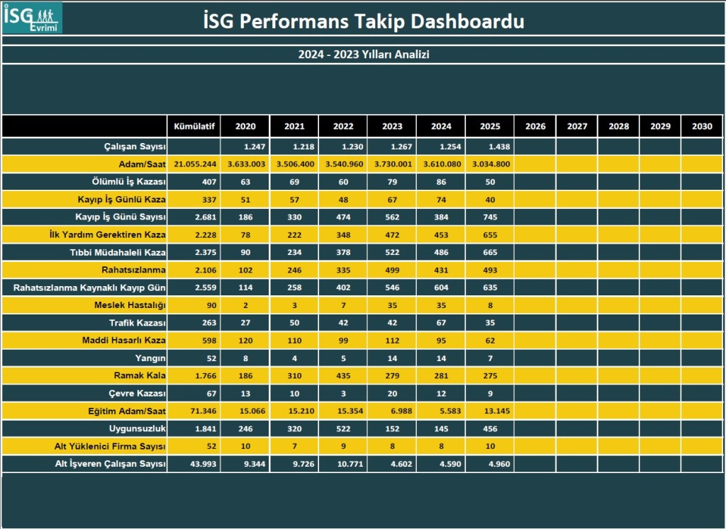 Bu araç, İSG profesyonellerine yalnızca sayısal değil, stratejik bir bakış açısı kazandırır. Performans trendlerini görmek, hedefleri belirlemek ve aksiyon planlarını daha etkili oluşturmak artık çok daha kolay.